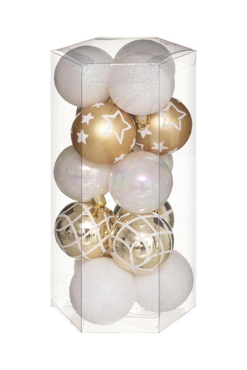 15 palline di Natale - Bianco e dorato - 5 cm