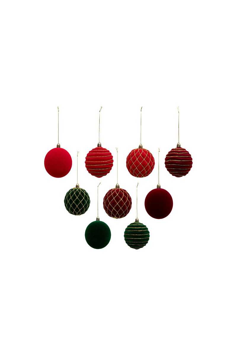 9 palline di Natale - Rosso e verde - 8 cm