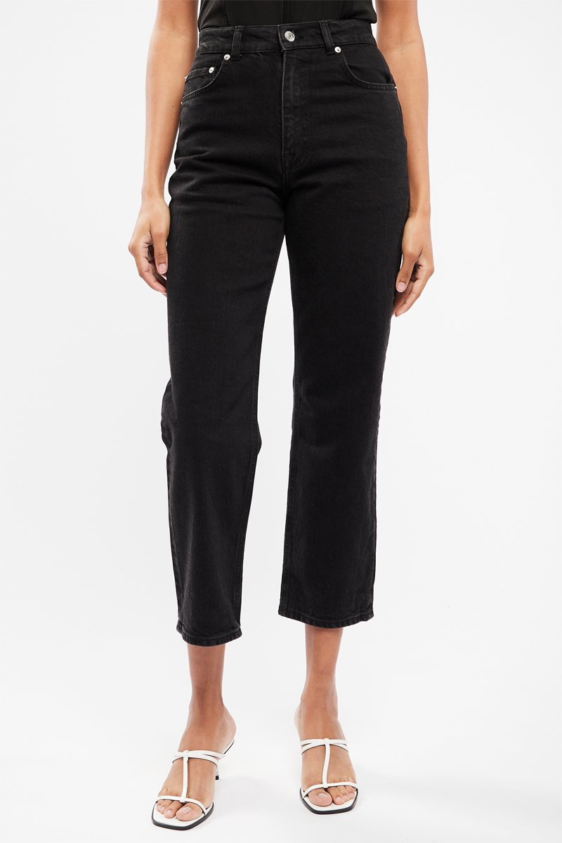 Jeans straight slim a vita alta - Nero