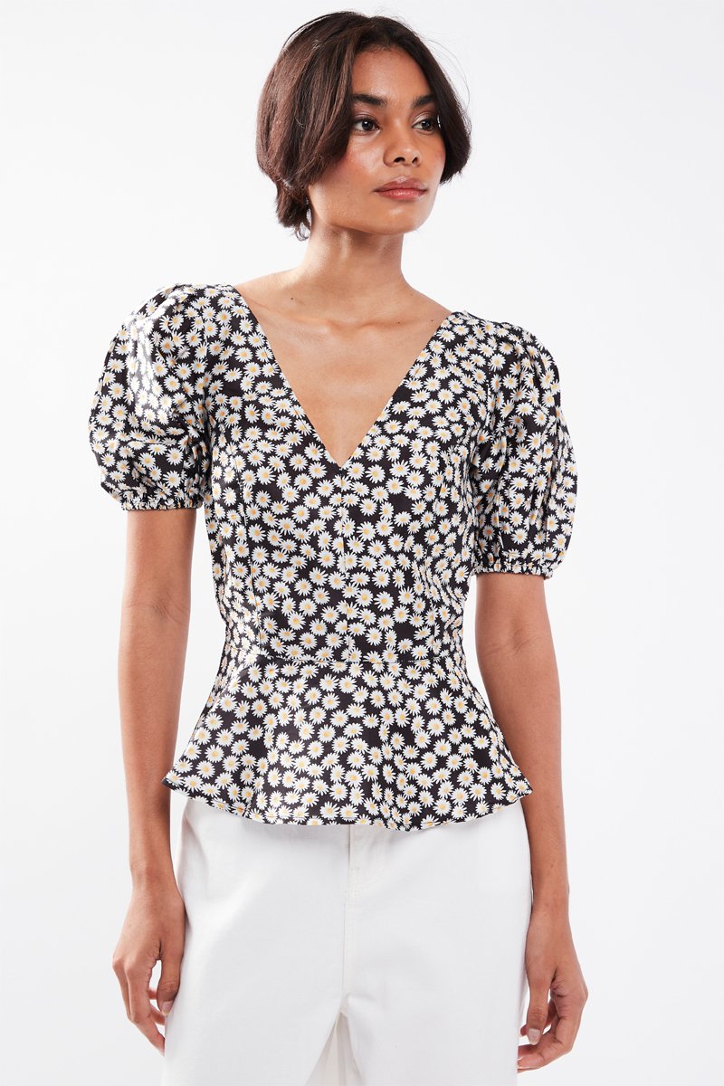 Top con maniche corte a sbuffo.