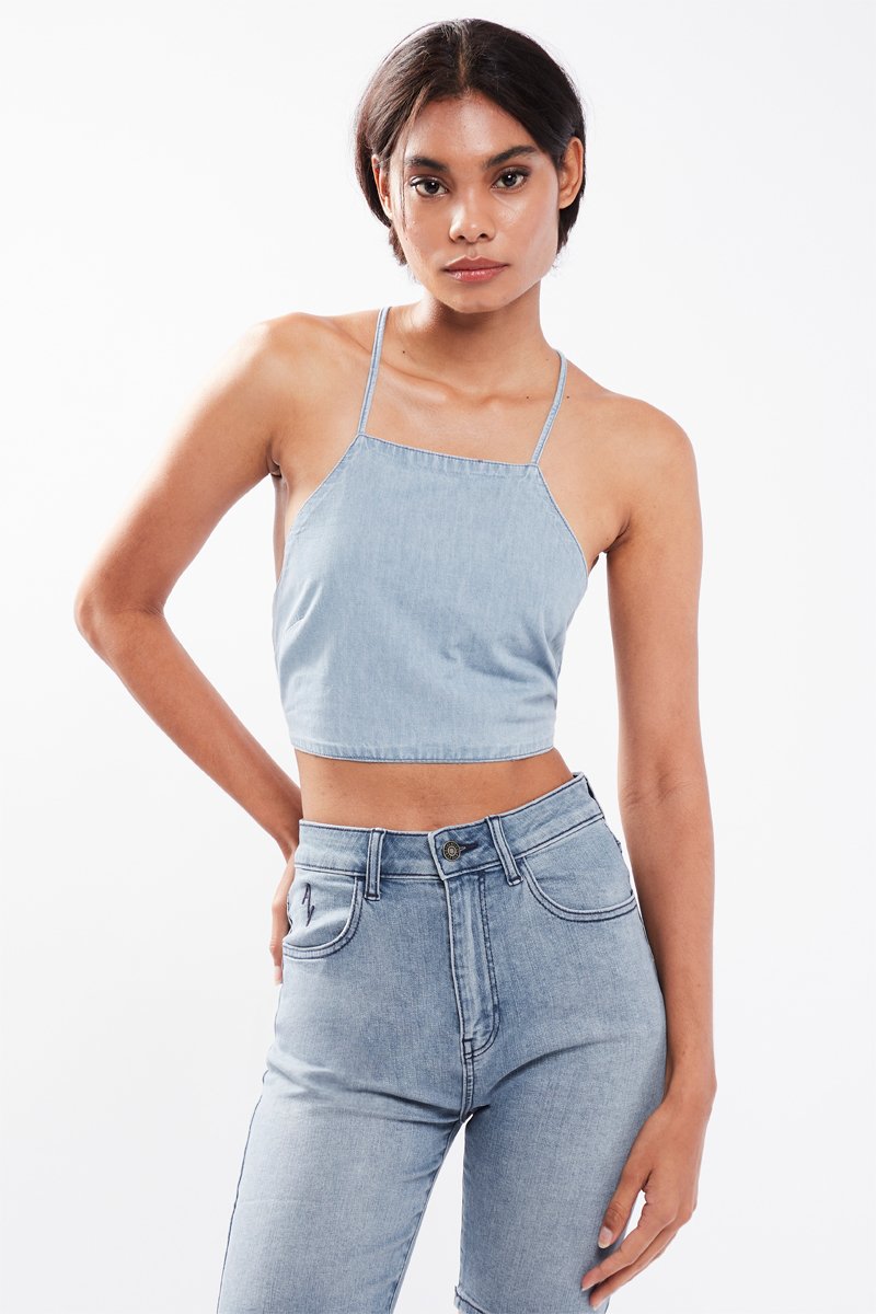 Crop top in jeans.