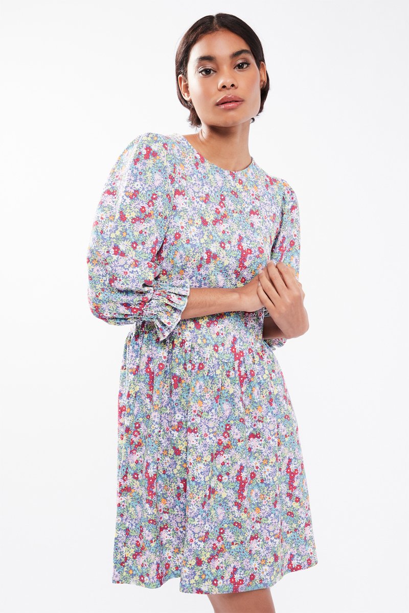 Abito a campana - Celeste e malva