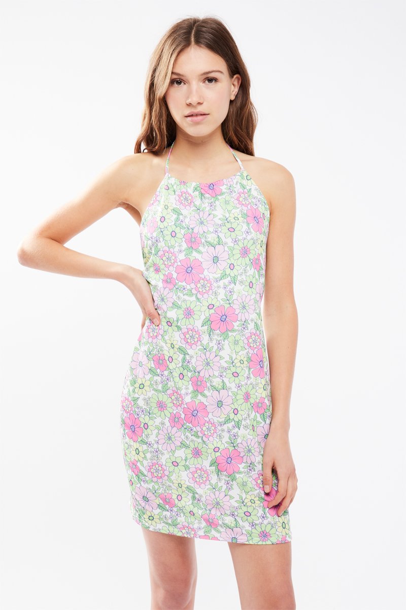 Abito taglio dritto - Verde chiaro e rosa