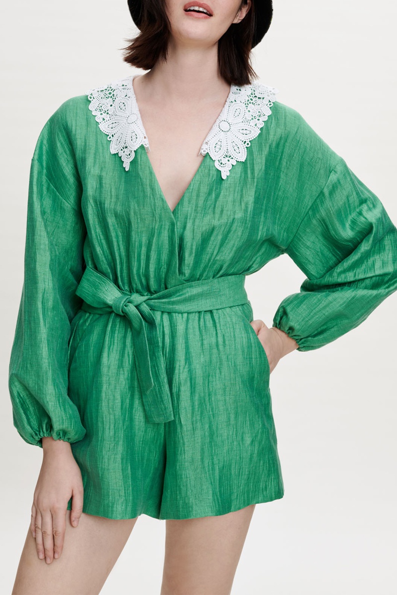 Tuta corta in lino - Verde