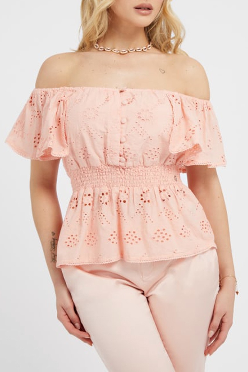 Top in sangallo a maniche corte.