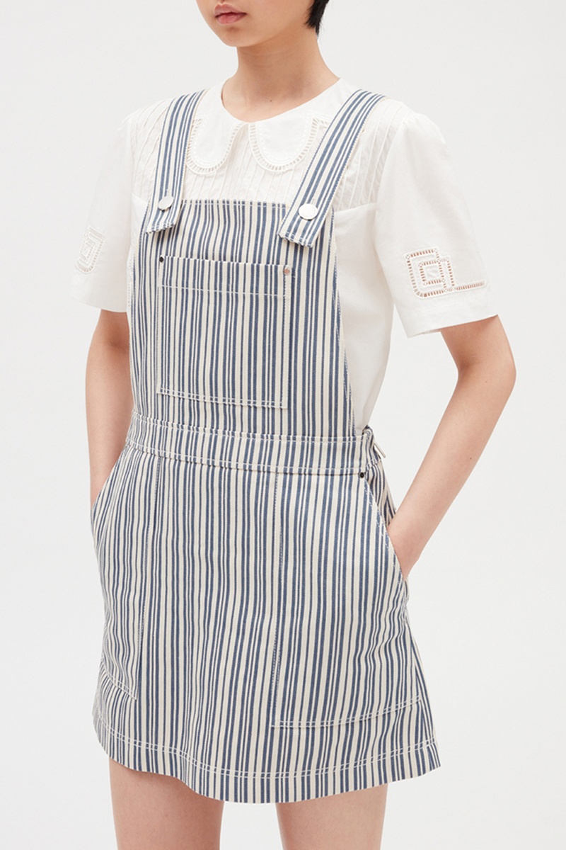Abito corto salopette - Bianco e blu