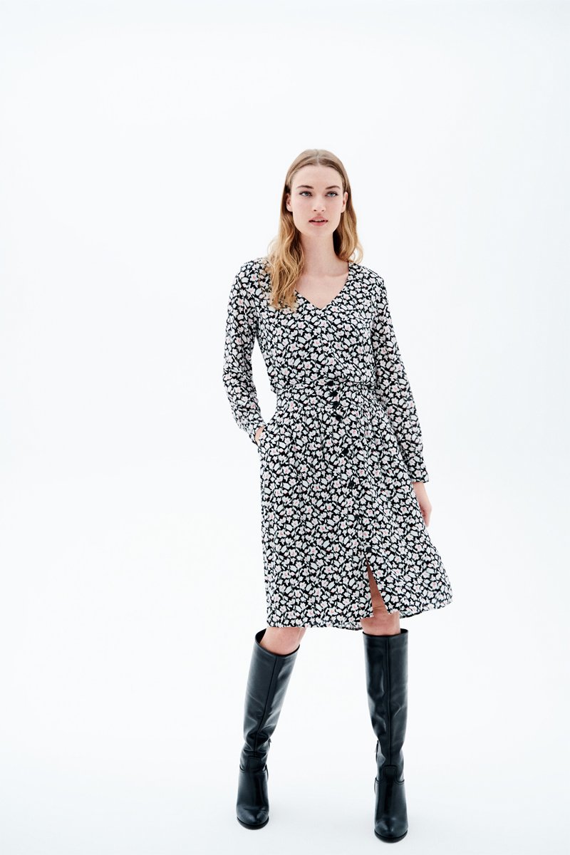 La silhouette affermata da Caroll mette in evidenza la bellezza femminile con materiali nobili e delicati: dagli abiti con stampe ai più basic, gioca con eleganza tra abbigliamento e accessori.