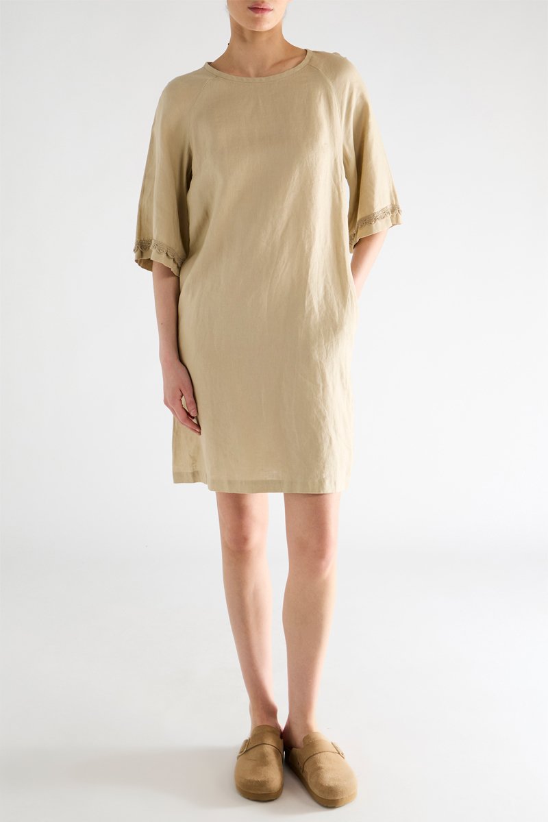 Abito taglio dritto in lino - Beige