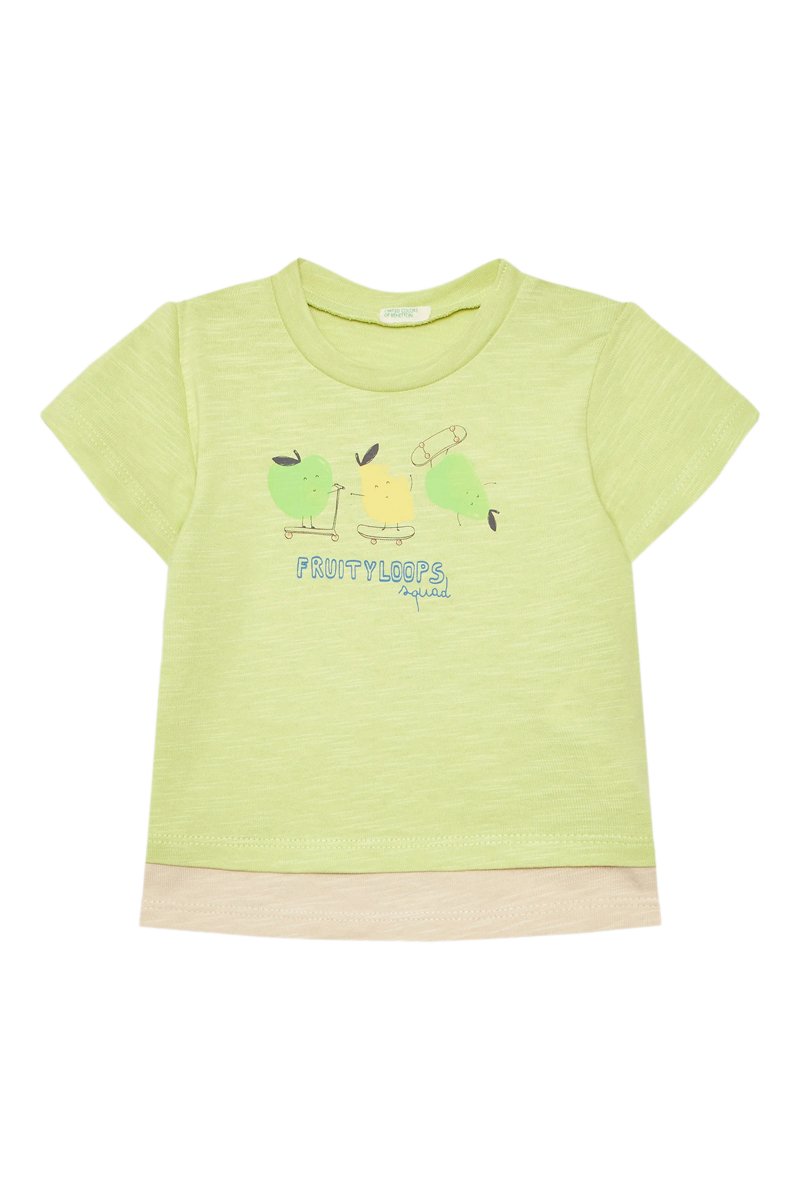 Scritta e motivi frutta sul davanti.