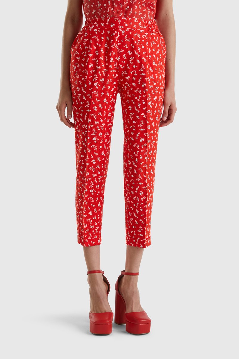 Pantaloni carrot 7/8 in lino - Arancione
