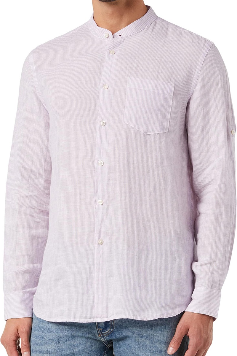 Camicia in lino a maniche lunghe rimboccabili con linguetta abbottonata.