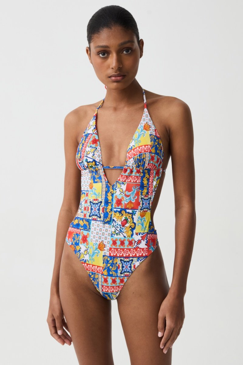 Costume intero - Celeste e rosso