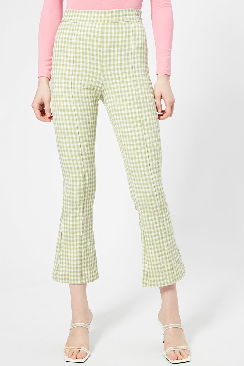 Pantaloni bootcut 7/8 a vita alta - Verde ed ecrù