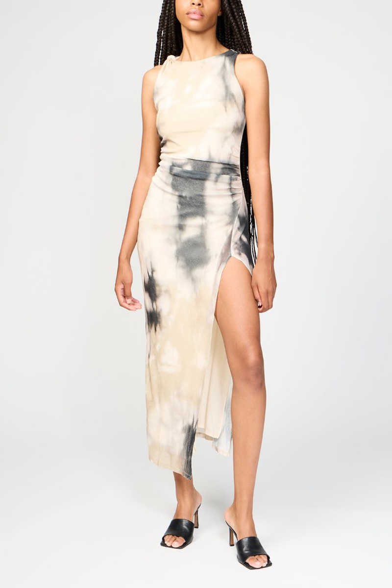 Abito lungo tie and dye - Ecrù e nero