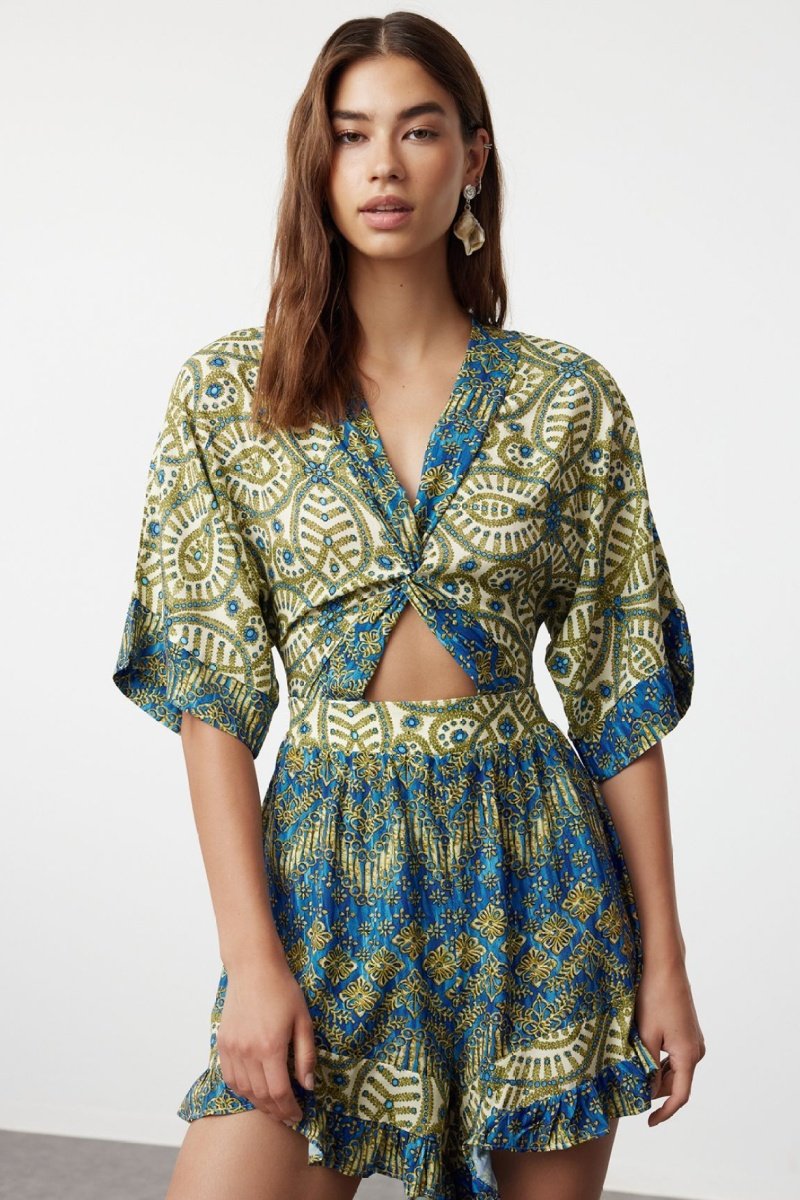 Effetto annodato e apertura sul davanti.