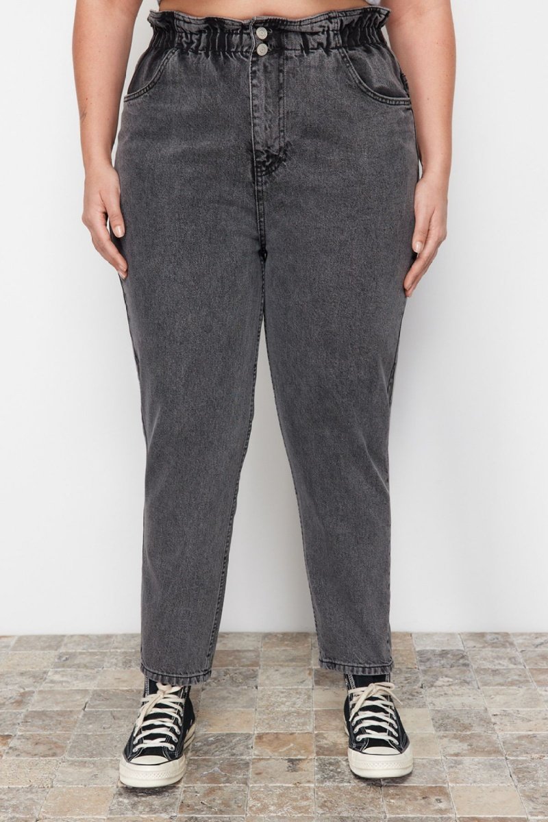 Jeans mom a vita alta - Grigio