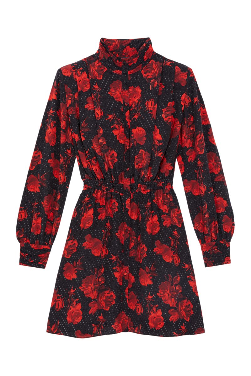 Abito a camicia in seta a maniche lunghe.