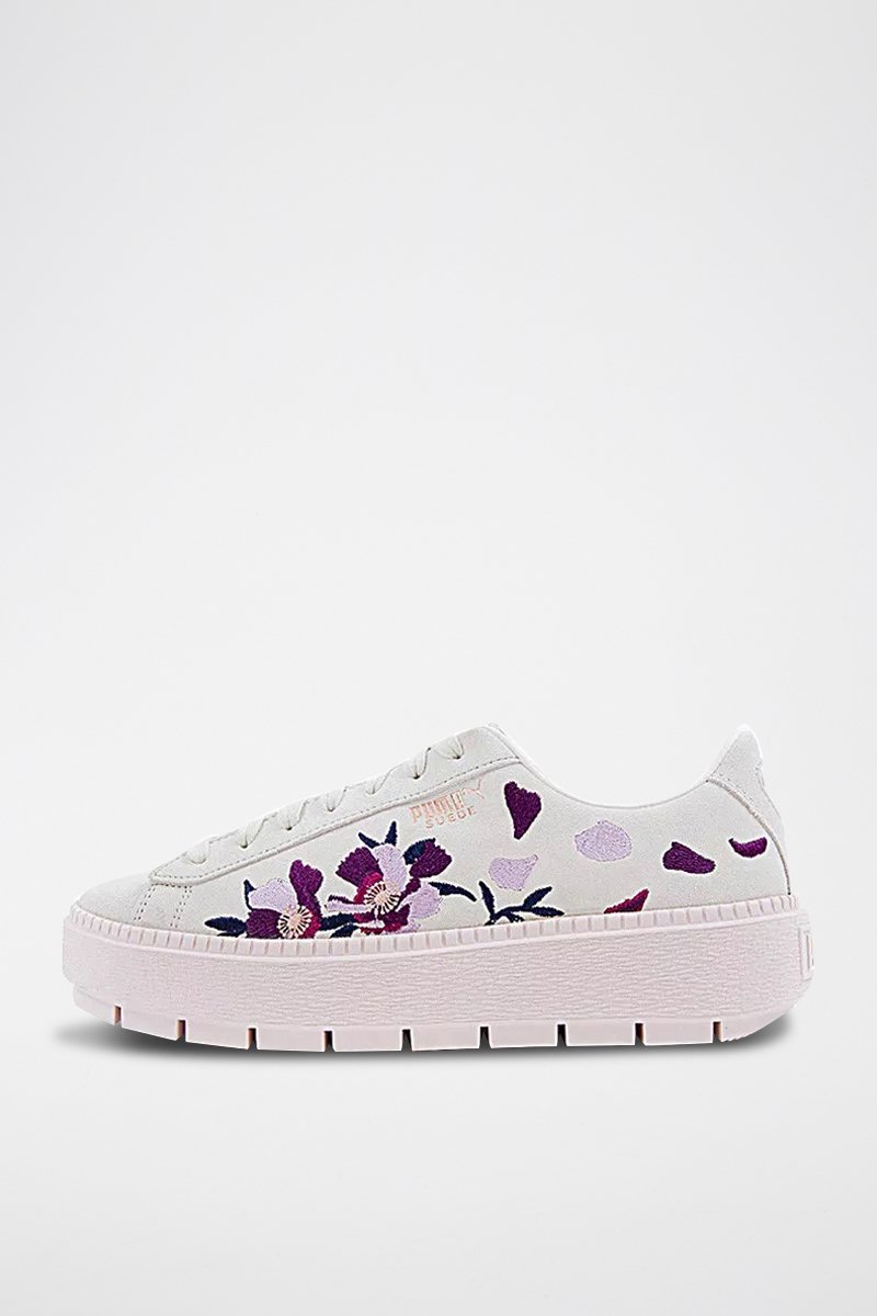 Sneakers platform in pelle scamosciata Trace Flowery - Bianco
