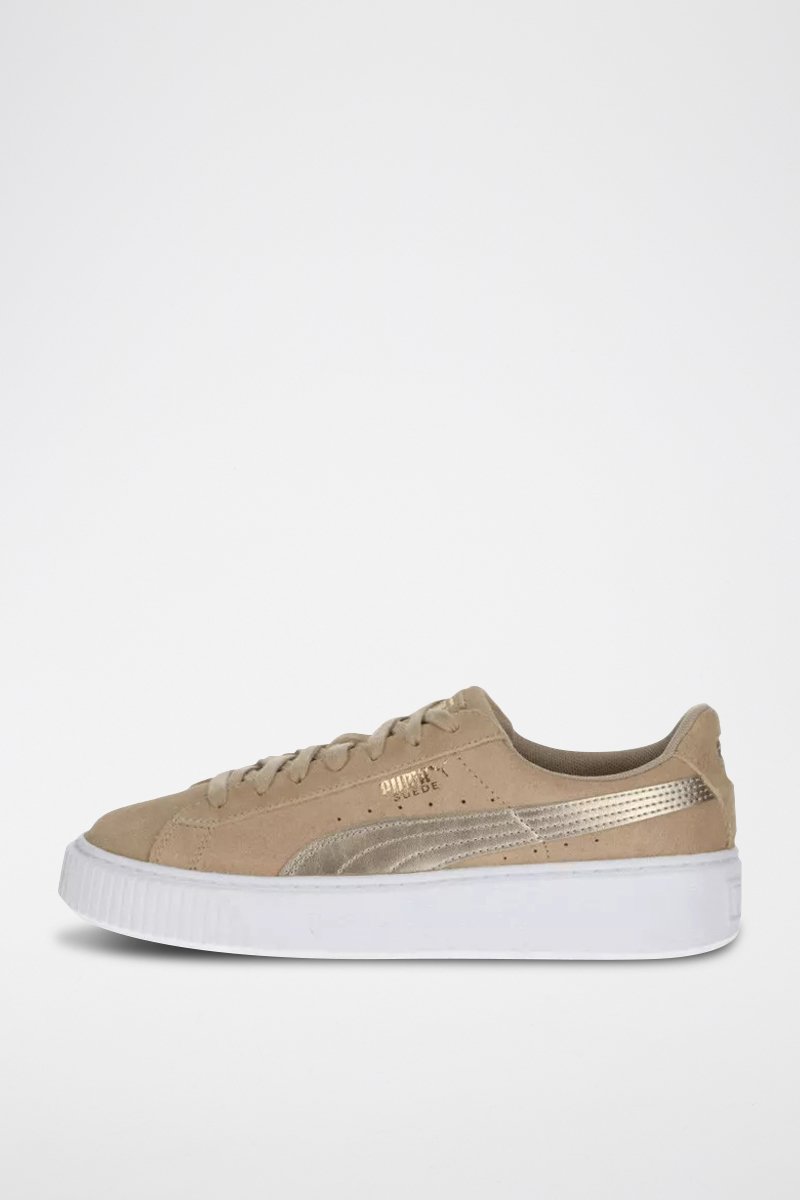 Sneakers in pelle scamosciata e pelle effetto metallizzato.