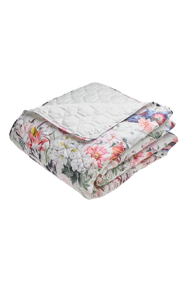Copriletto in raso di cotone 80 fili/cm² Fleurs éclatantes - Bianco e rosa