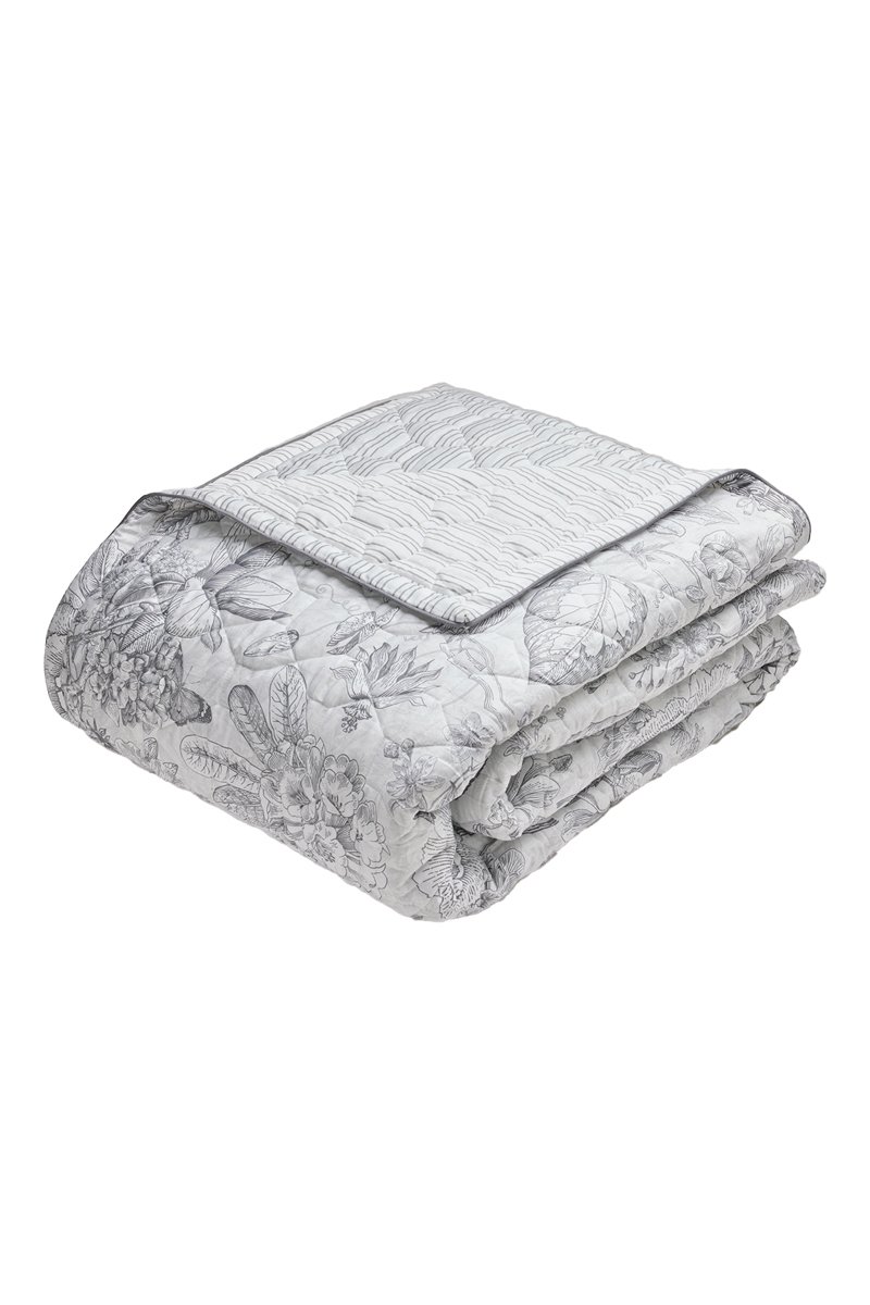 Copriletto in raso di cotone 80 fili/cm² Fleurs esquissées - Bianco e grigio