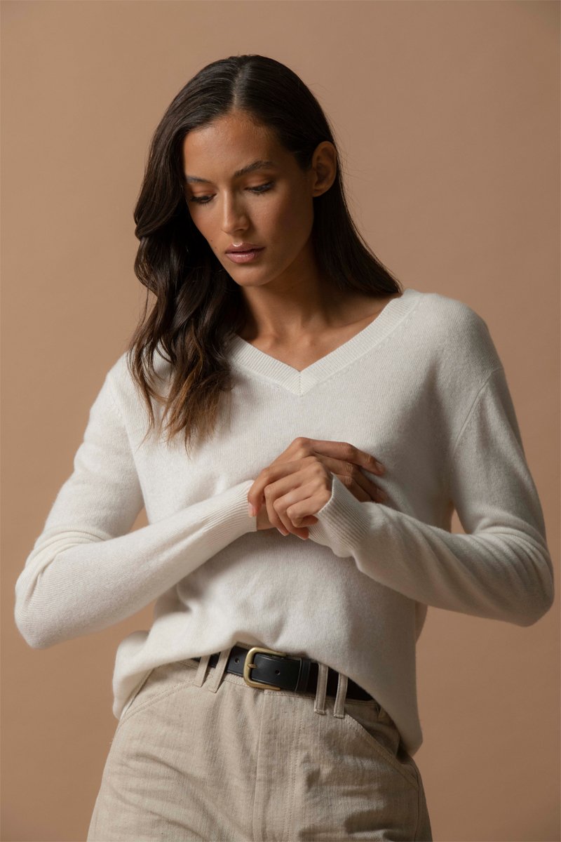 Maglia Kalie - 100% cashmere 2 fili - Collo a V - Avorio