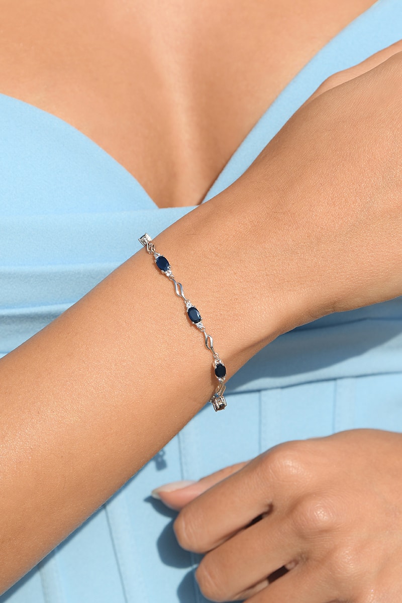 Bracciale in oro bianco con 14 topazi e 7 zaffiri.