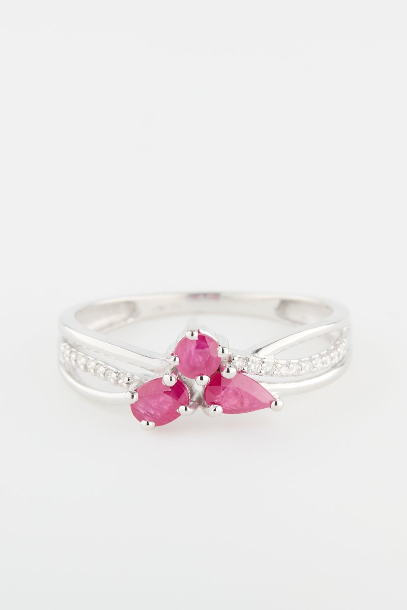Anello in oro bianco con 17 diamanti e 3 rubini.