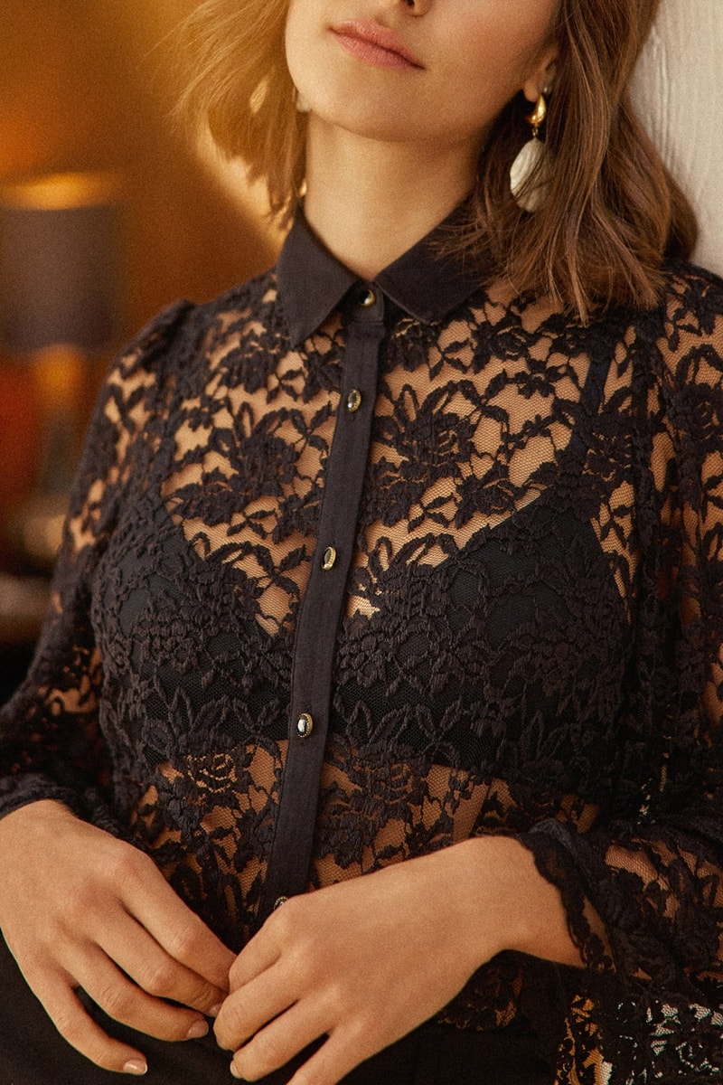 Camicia in pizzo a maniche lunghe.