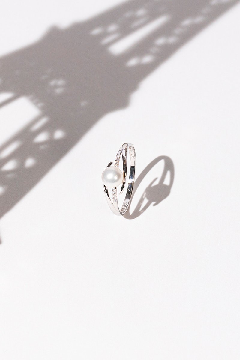 Anello Makira - Oro bianco, diamanti e perla coltivata