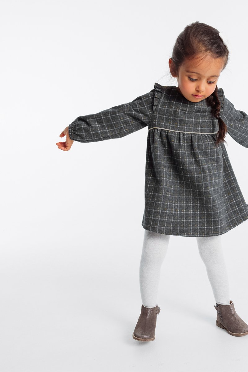 Abito con maniche lunghe con elastico e volant.