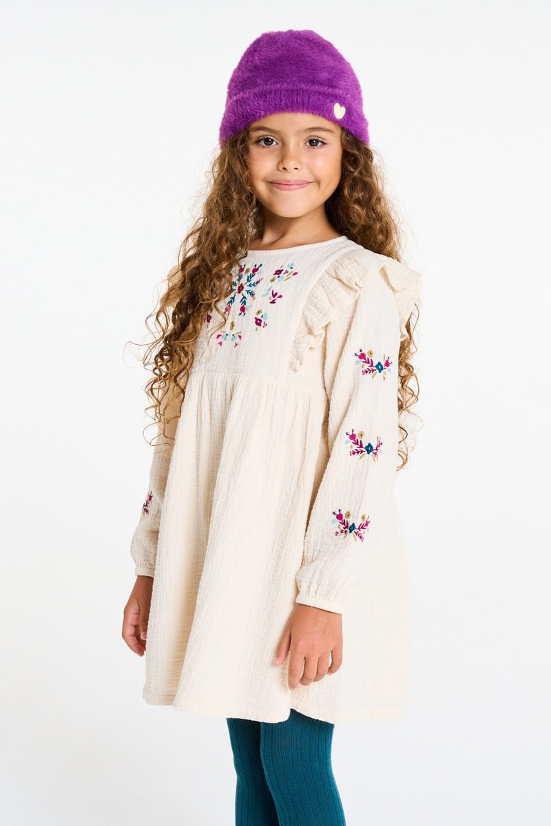 Motivi a fiori ricamati sulle maniche e sul davanti.