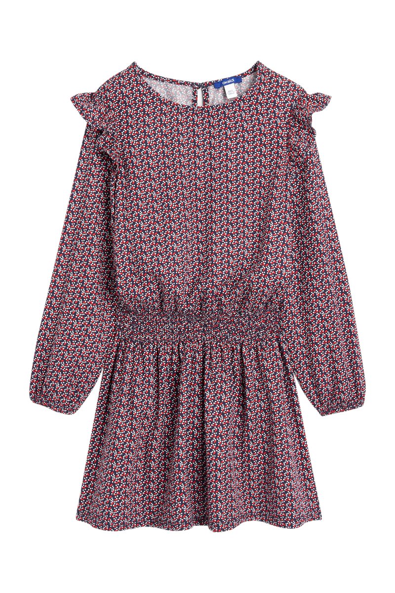 Abito a maniche lunghe con elastico e volant.