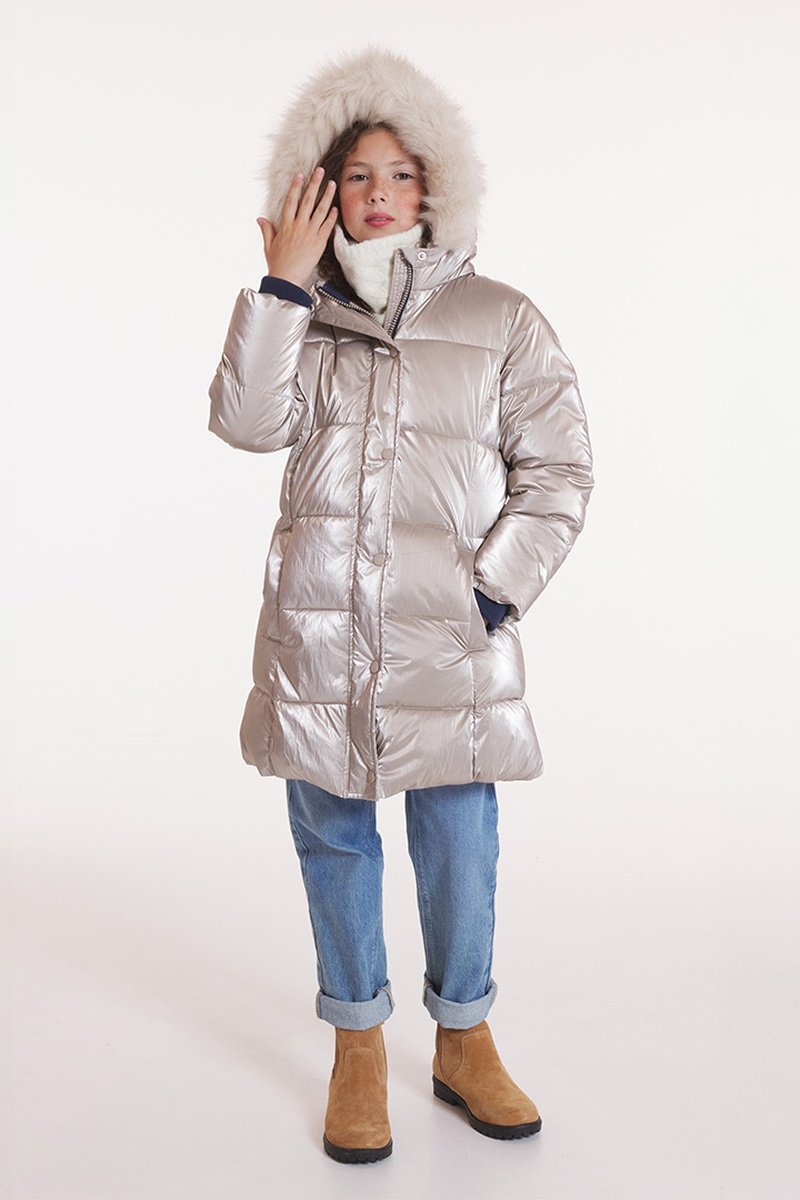 Piumino con cappuccio con pelliccia sintetica.