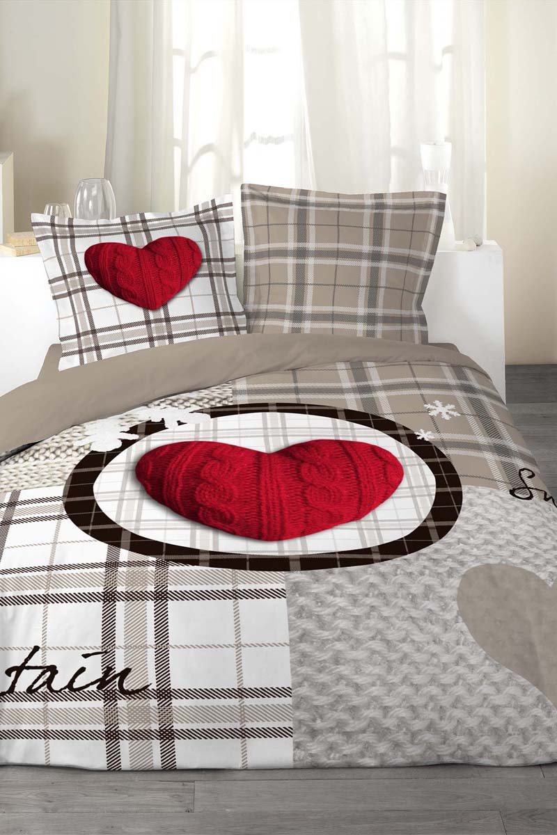 Parure copripiumino in cotone 42 fili/cm² Dessin Place Love Mountain - Beige e rosso