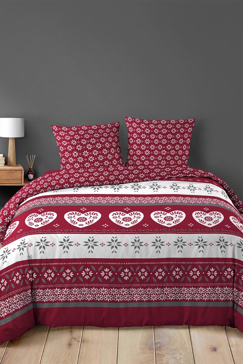 Parure copripiumino in cotone 42 fili/cm² Alpage - Rosso e bianco
