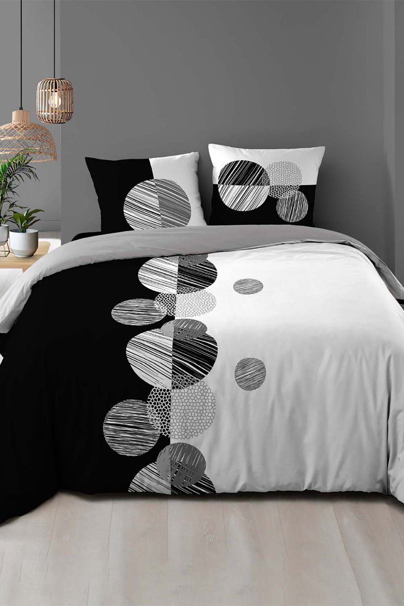 Parure copripiumino double face in cotone 57 fili/cm² Stormi - Nero e bianco