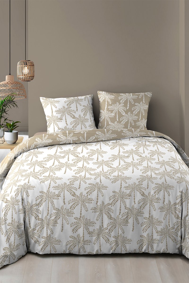 Parure copripiumino double face in cotone Oliana - Bianco e taupe