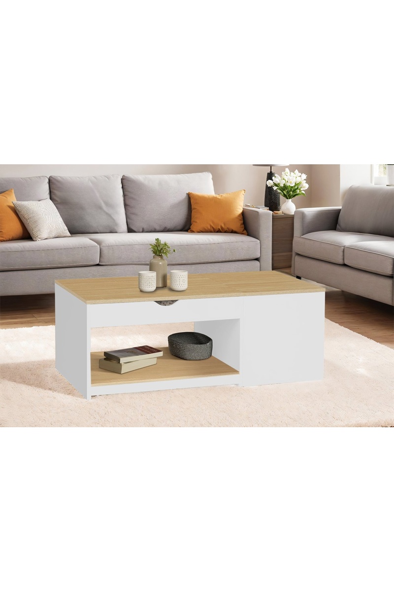 Tavolino Elina - Bianco e imitazione legno