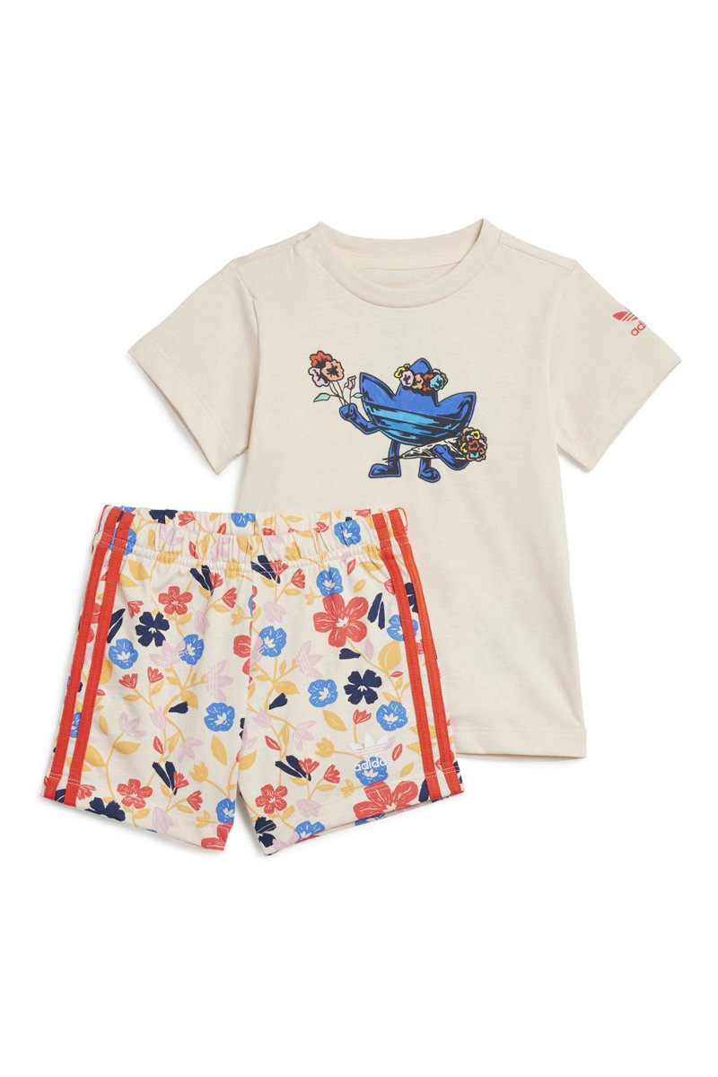T-shirt e shorts Floral - Beige e rosso
