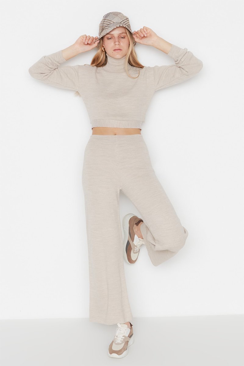 Maglia corta e pantaloni wide legs - Beige