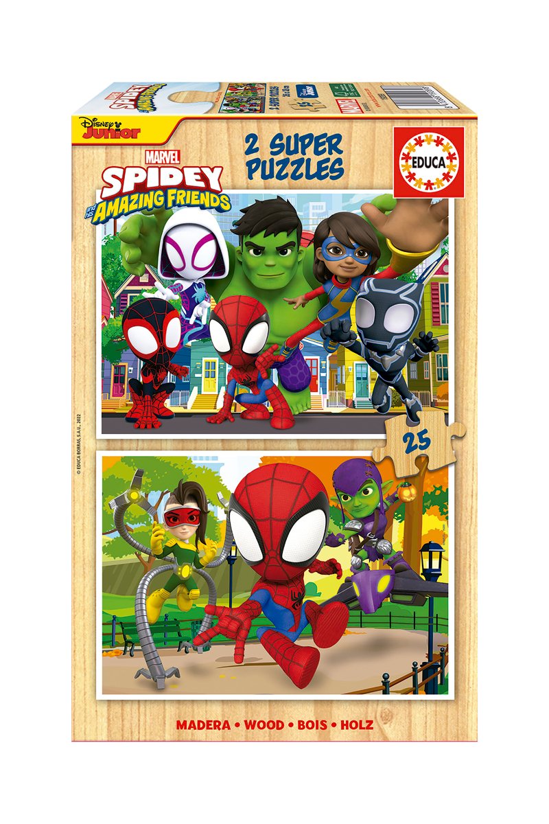 2 puzzle Spidey & his amazing friends Marvel Disney Jr in legno - 2 x 25 pezzi - Da 3 anni