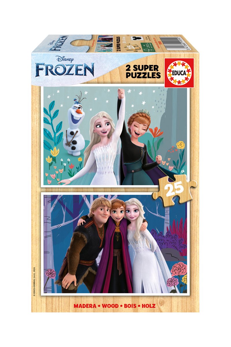 2 puzzle Elsa, Anna, Olaf e Kristoff Frozen Disney in legno - 2 x 25 pezzi - Da 3 anni