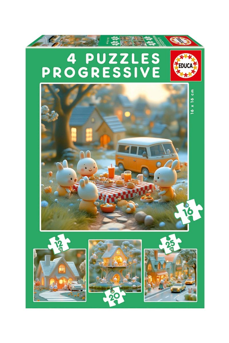 Puzzle progressivo 4 in 1 Città dei conigli -12-25 pezzi - Da 12 anni