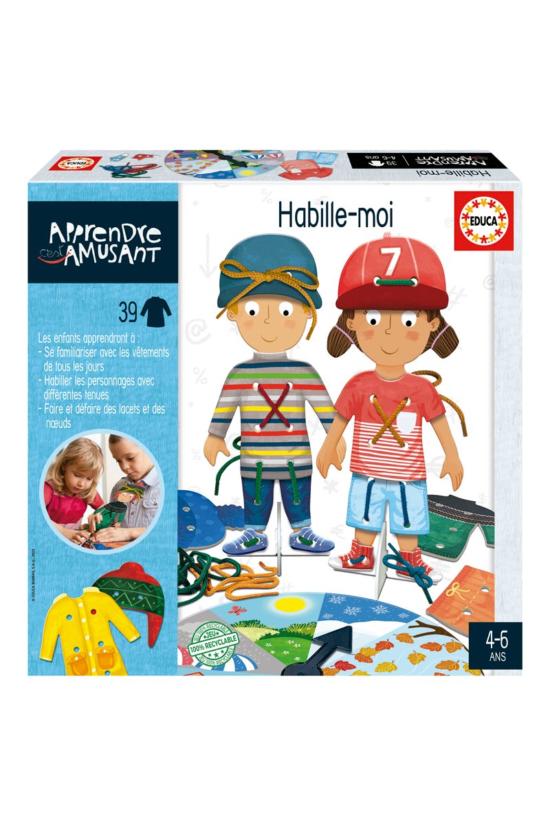 Permette ai bambini di imparare a familiarizzare con i vestiti di tutti i giorni, vestire i personaggi con diversi outfit, fare e disfare lacci e nodi.