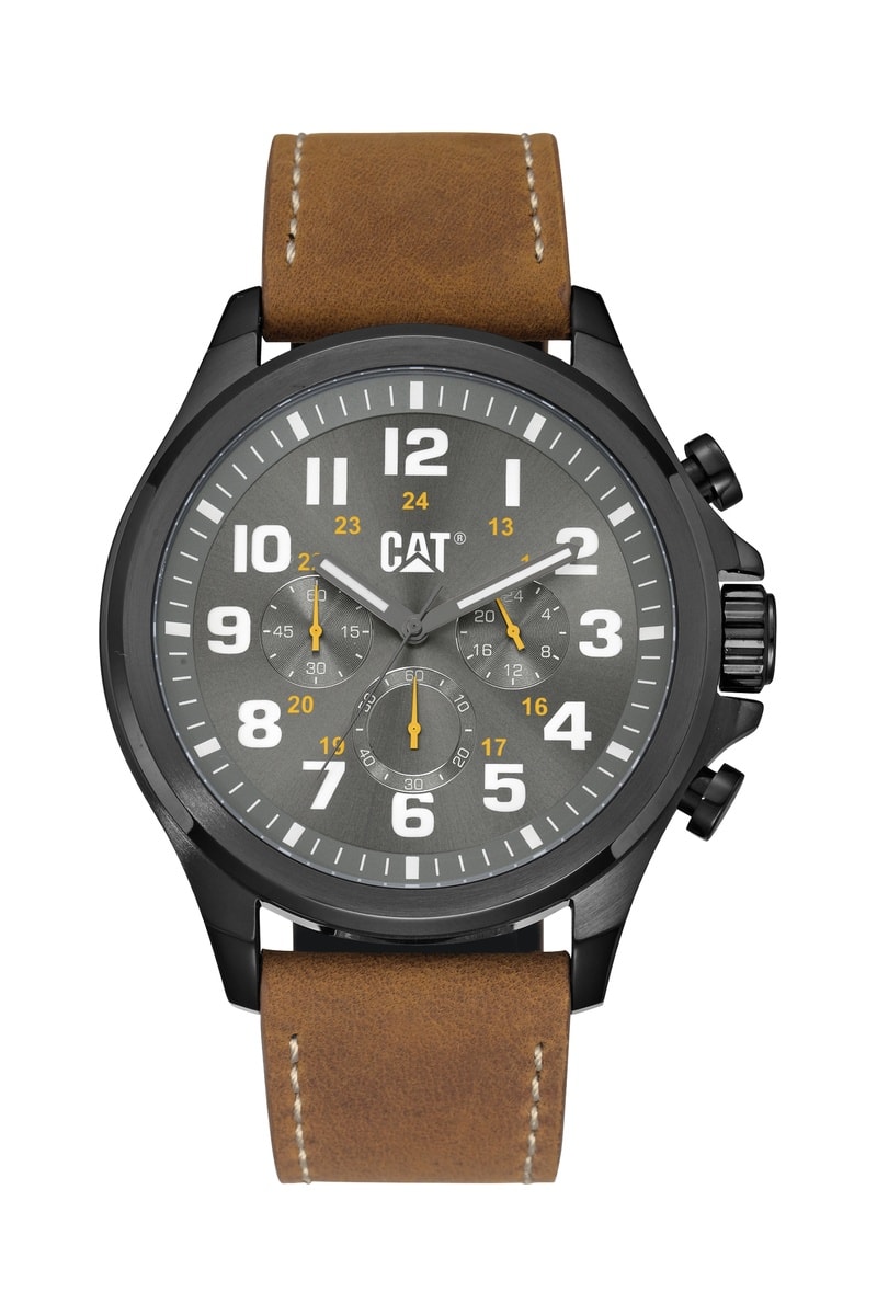 Orologio al quarzo in pelle - Cronografo - Marrone chiaro e nero