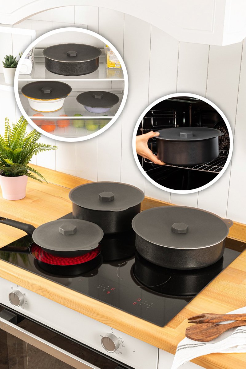 3 coperchi in silicone senza BPA - 21/25/30 cm