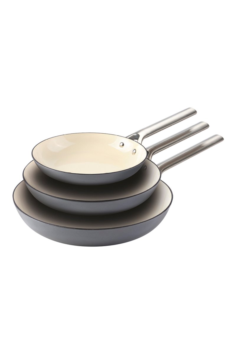 3 padelle in ghisa di acciaio smaltato - 20/24/28 cm