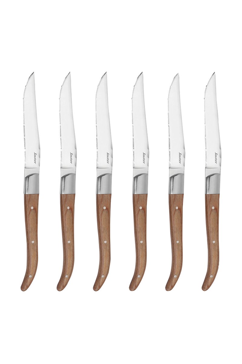 6 coltelli da bistecca in acciaio inossidabile con manici in legno di Pakka.