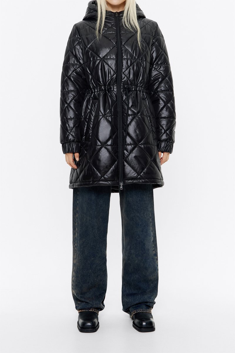 Piumino con cappuccio e coulisse a maniche lunghe.